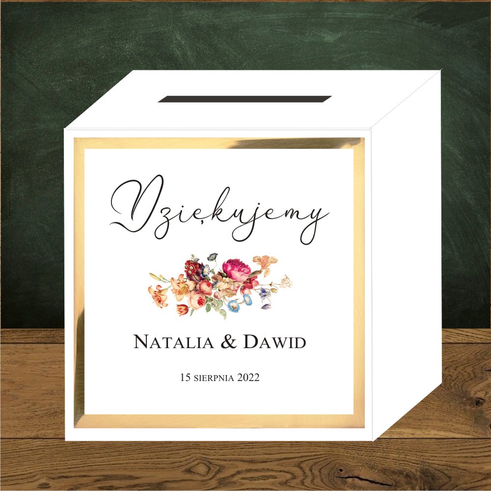 Zaproszenia ślubne Angielskie róże retro flanella - fantazyjne. Kwadratowe złoty kartonik