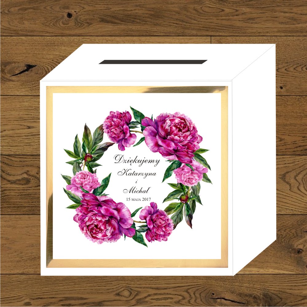 Pudełka na ciasto weselne - Piwonie wianek fuksja