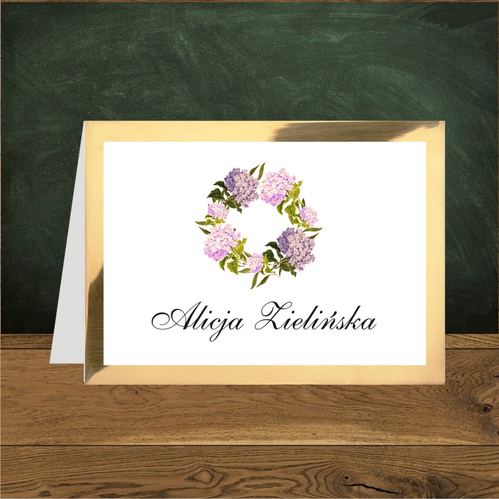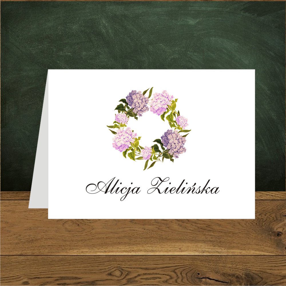 Zaproszenia na ślub z różowymi hortensjami w wianku