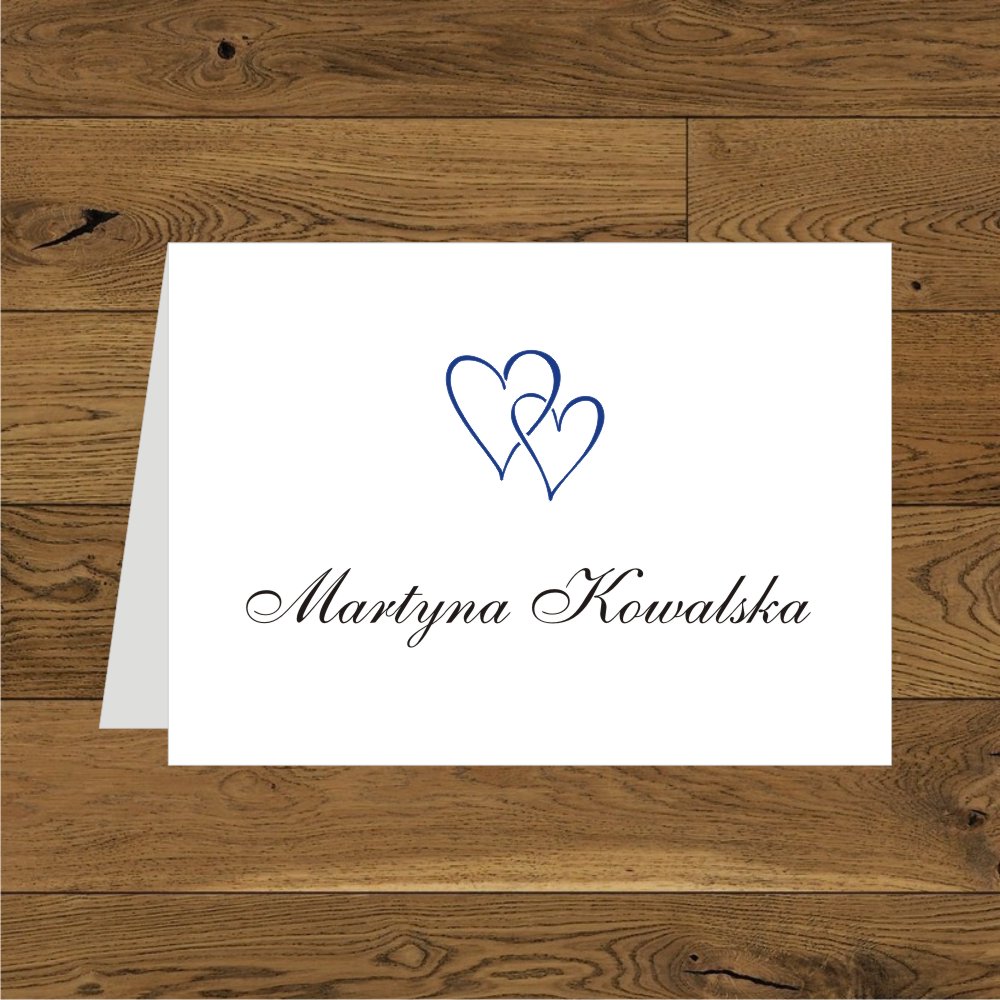 Minimalistyczne dwa małe serduszka granatowe. Menu jednostronne z sercami