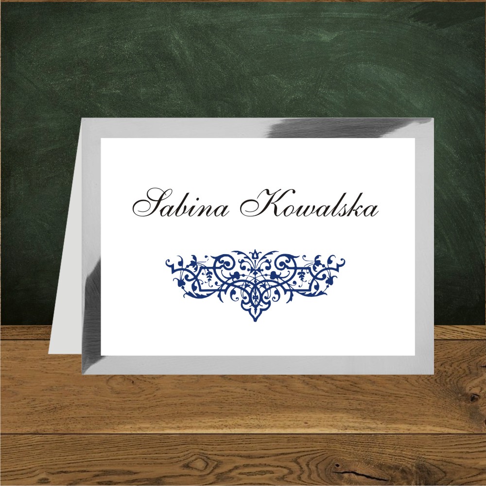 Zaproszenia ślubne eleganckie z granatowym ornamentem. Oliwia granatowa