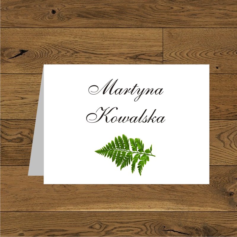 Zaposzenie ślubne z gałązkami paprotki. Kwadratowe, proste. Paprotka