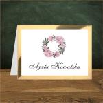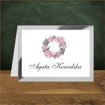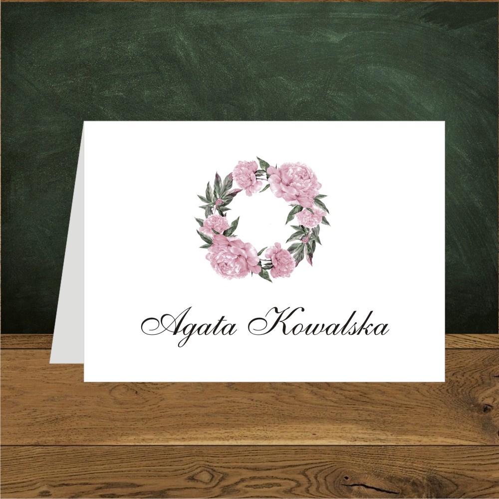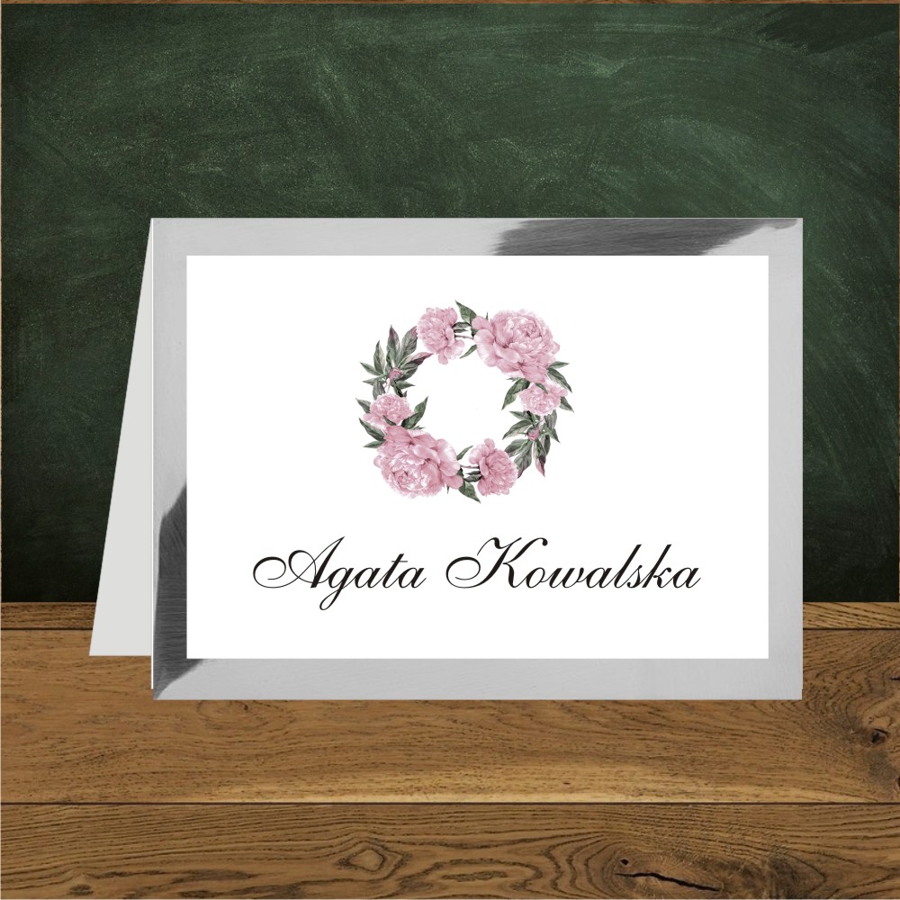 Piwonie- wianek pastelowy różowy jednostronne menu weselne