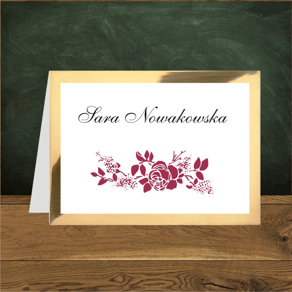 Róże bordo. Przywieszki do prezencików dla gości weselnych