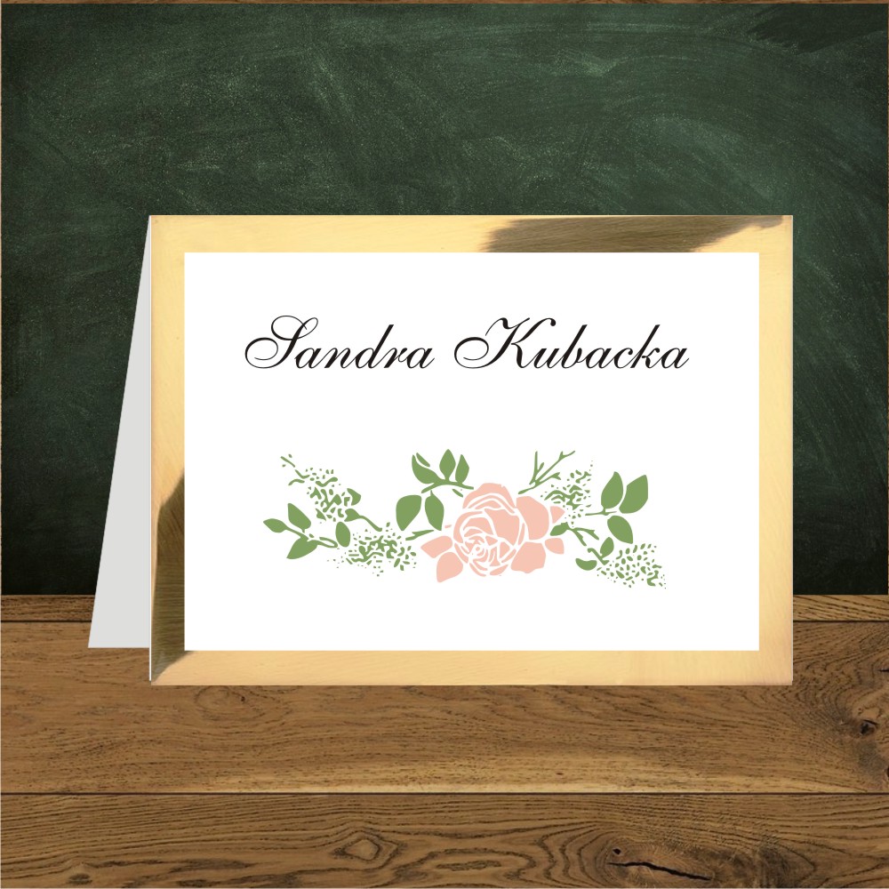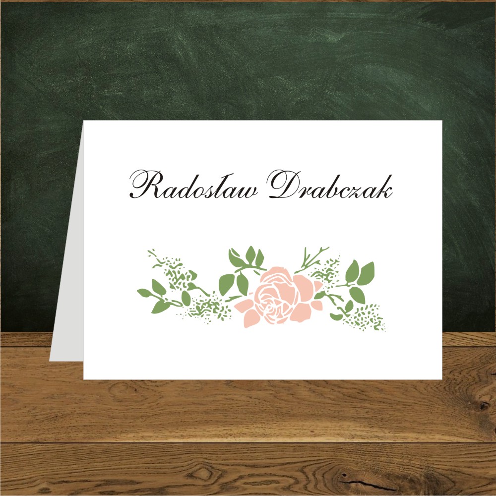 Zaproszenia ślubne kwiatowe. Róże łososiowe i zielone listki
