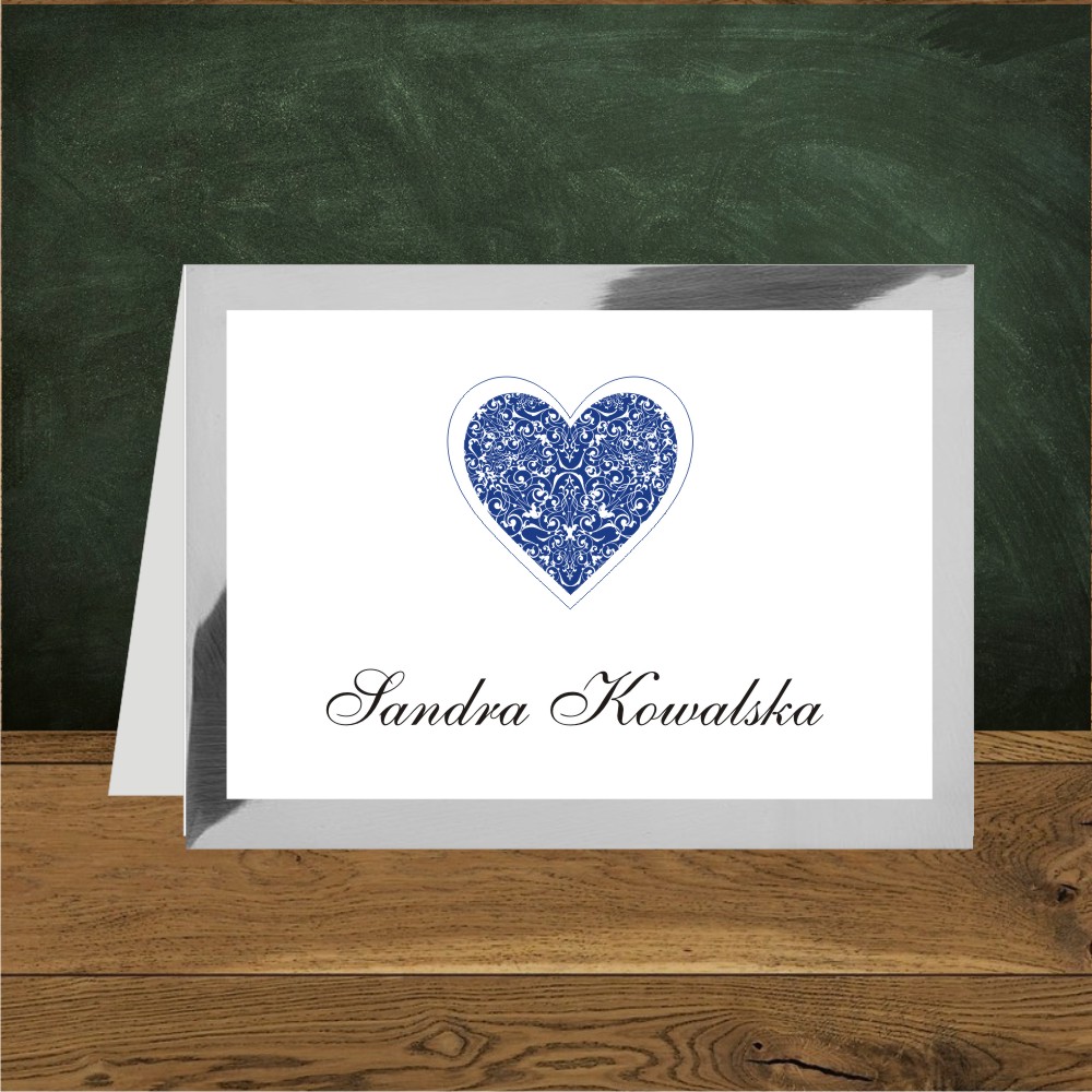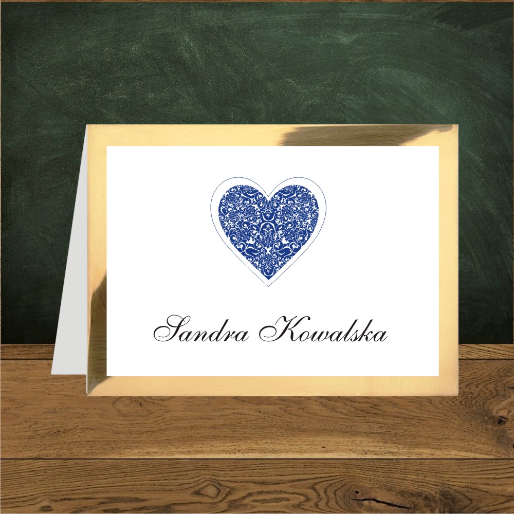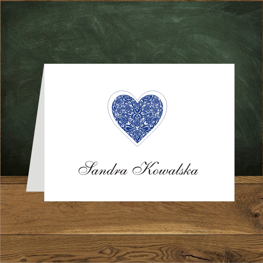 Zaproszenia na slub z granatowym sercem, proste minimalistyczne. Serce granatowe