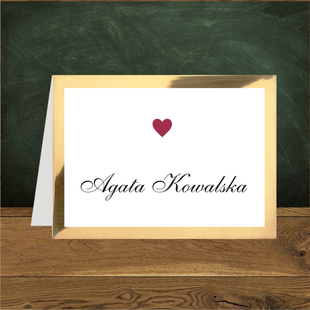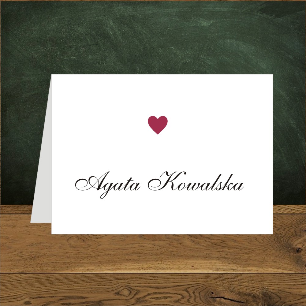 Zaproszenia weselne minimalistyczne z serduszkiem bordowym