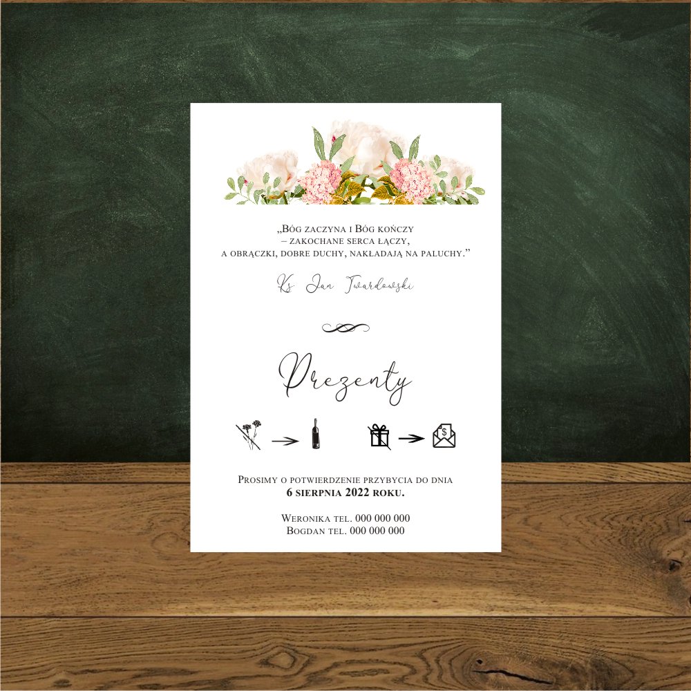 Zaproszenia na ślub i wesele z pastelowymi kwiatami. Kwadratowe, proste. Kwiaty romantyczny ogród