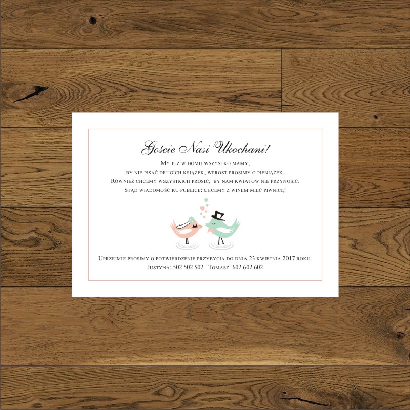 Front do pudełek na koperty Ptaszki losoś i mięta