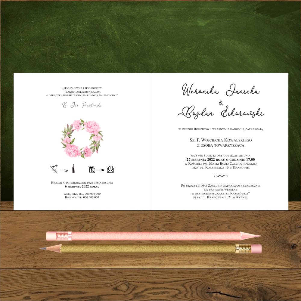 Zaproszenia ślubne jednostronne piwonie romantyczny różowy
