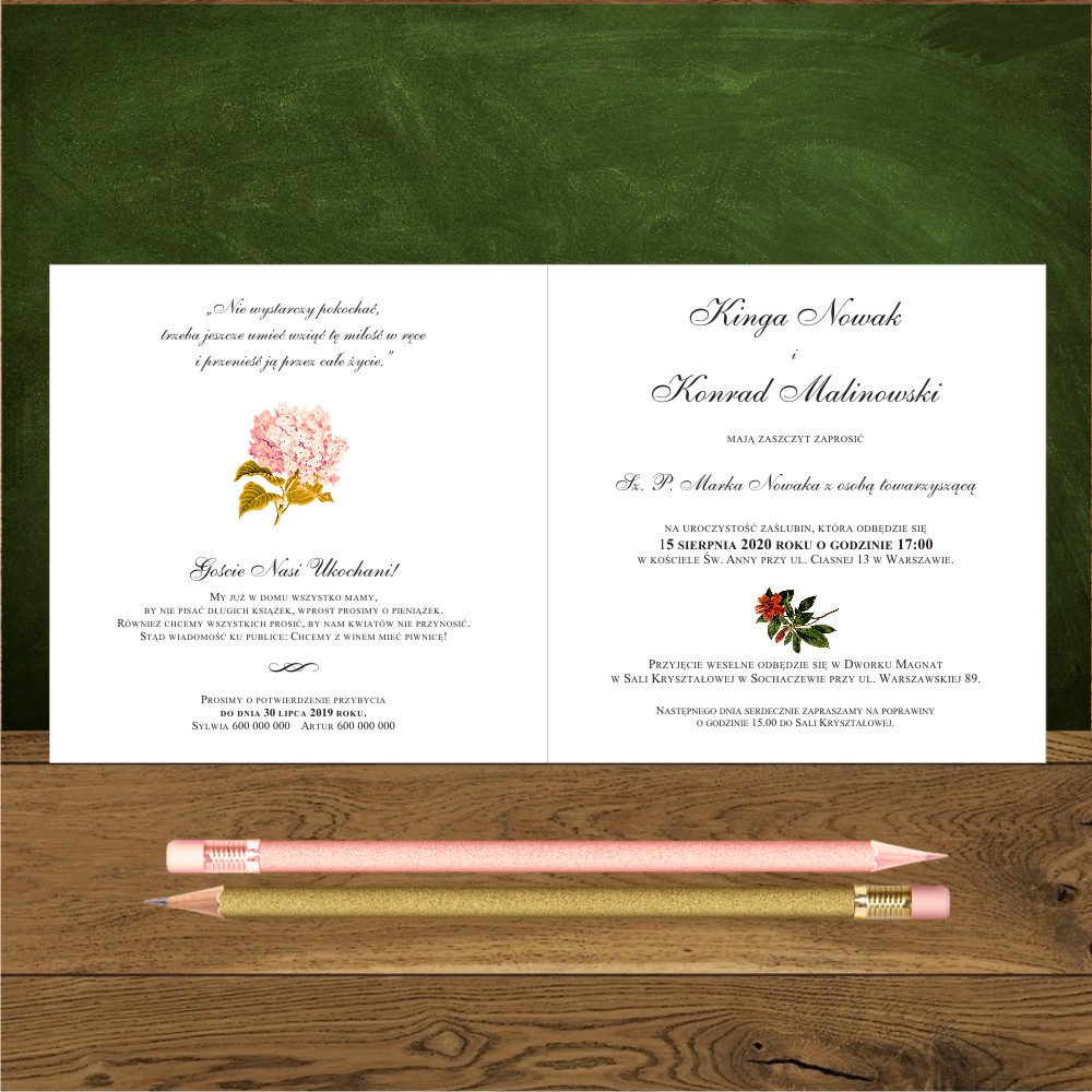 W tę ilość wliczamy zaproszenia na ślub i wesele i na sam ślub