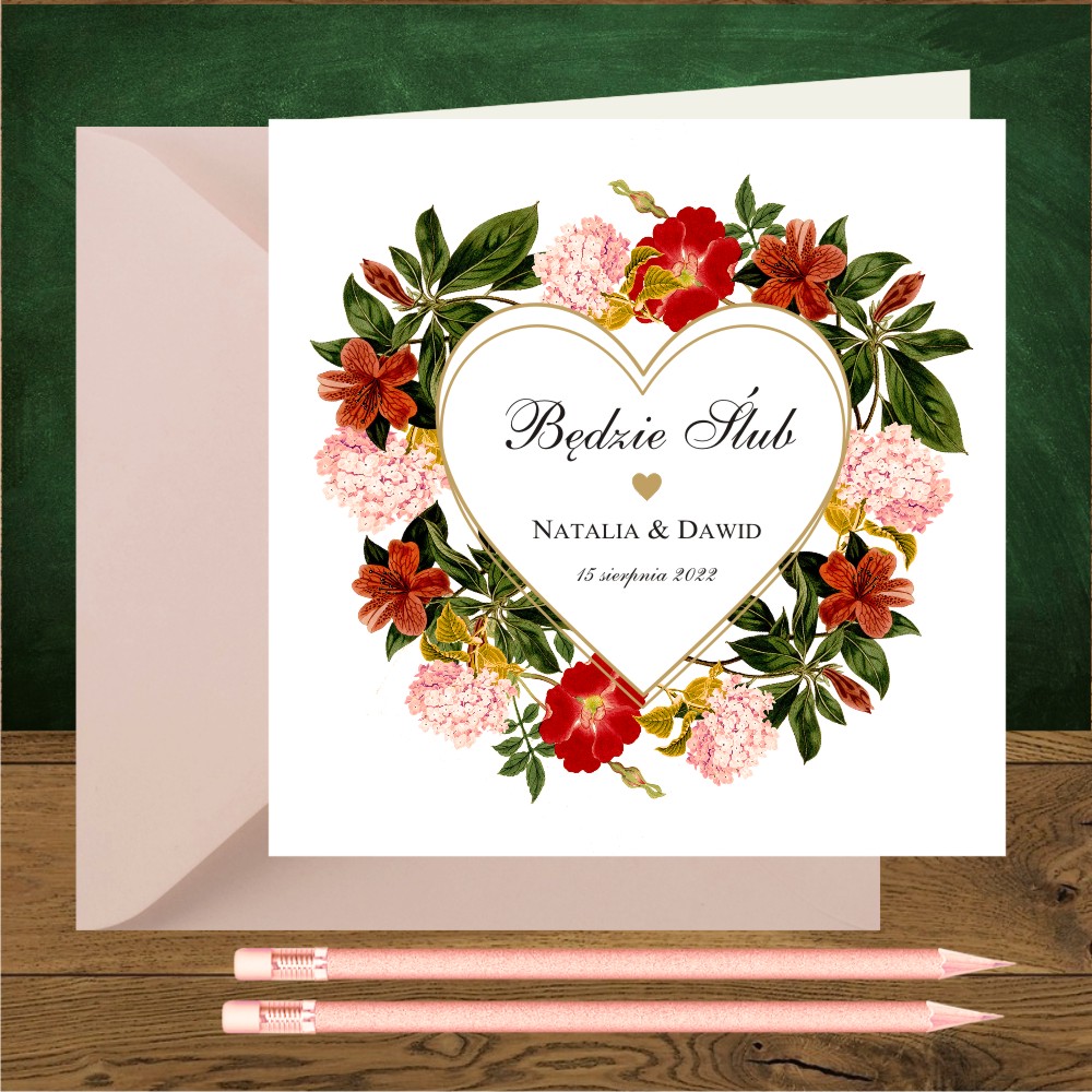 Zaproszenia na ślub kwiaty bordo i serce
