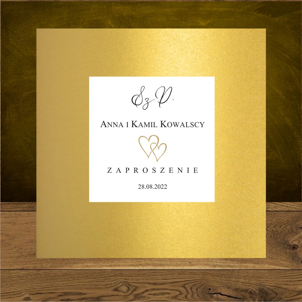 Zaproszenia slubne jednostronne dwa serduszka złote minimalistyczne