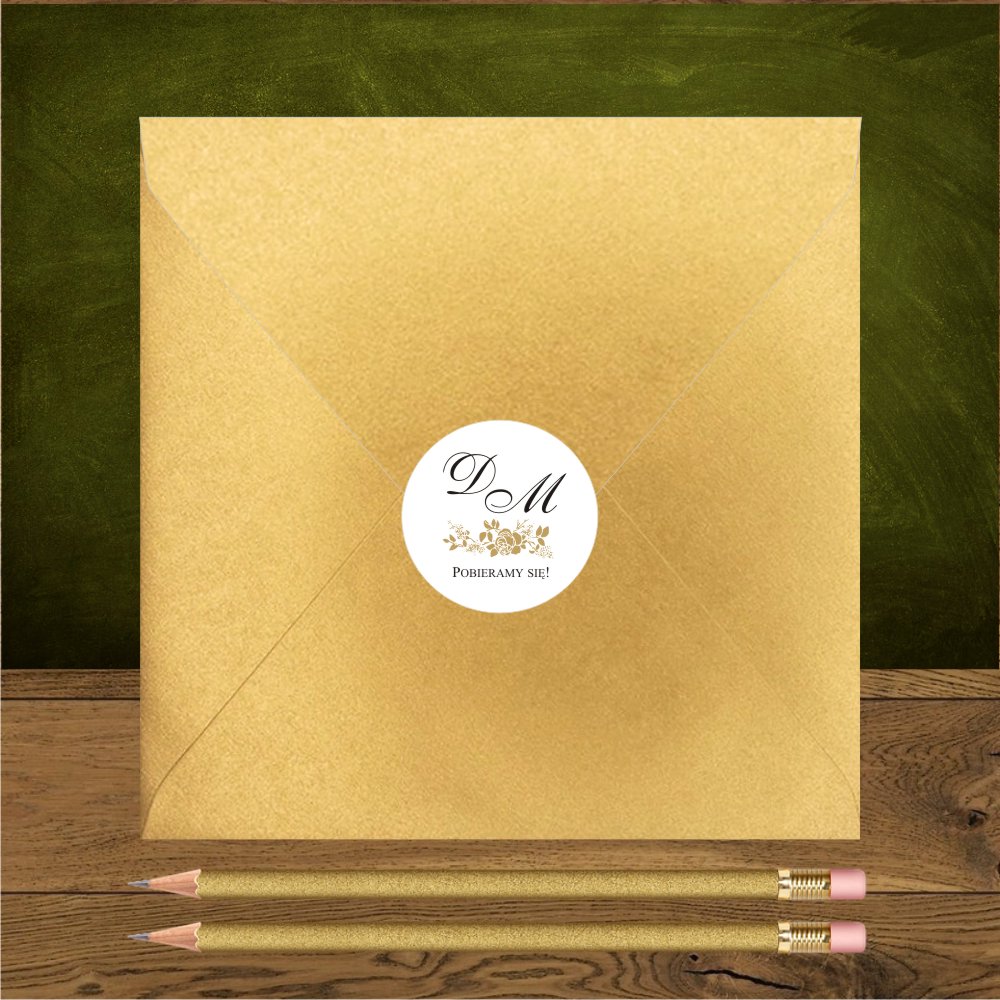Zaproszenia w stylistyce glamour Złote róże naklejane na złoty mirror