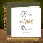 Zaproszenia na ślub ze złotymi różami. Proste, kwadratowe. Róże złote