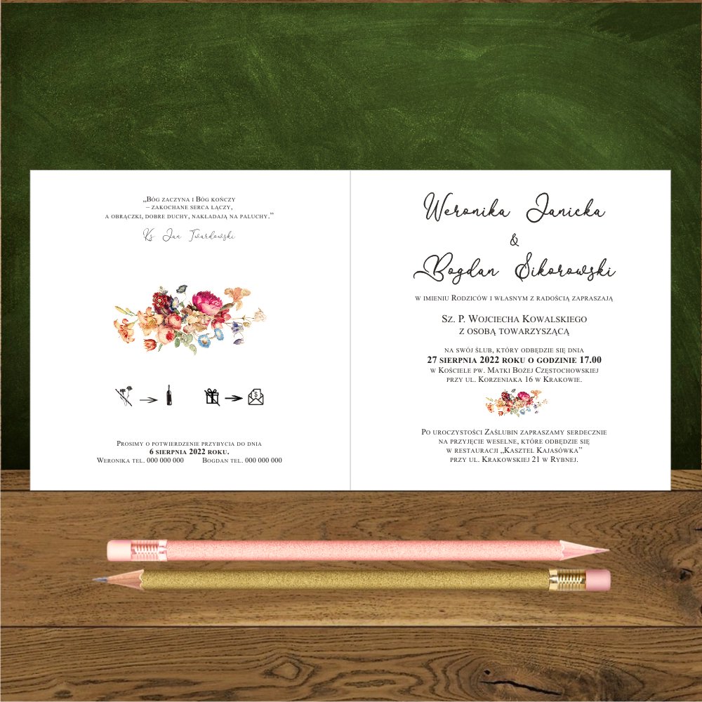 Format zaproszenia: 14 x 14 cm po złożeniu