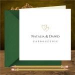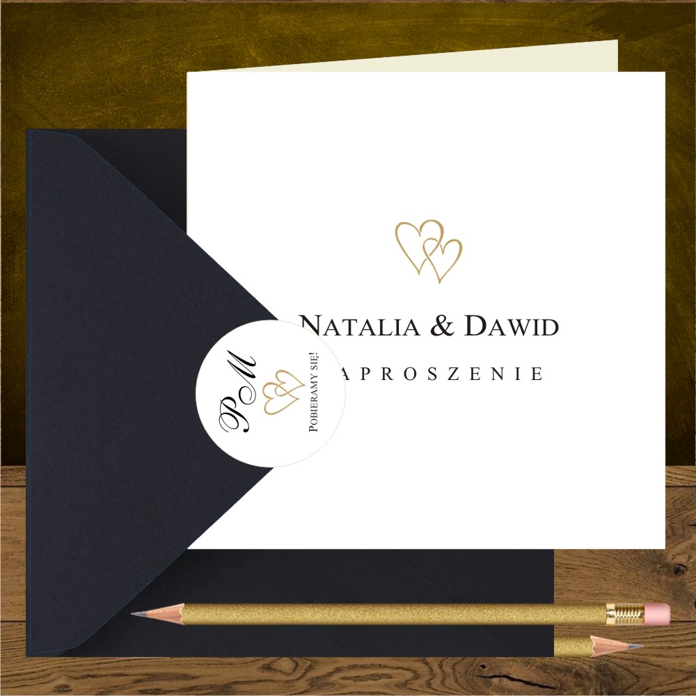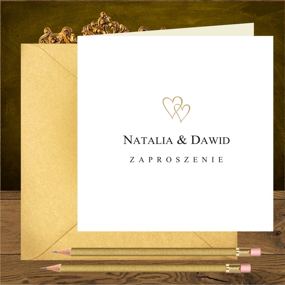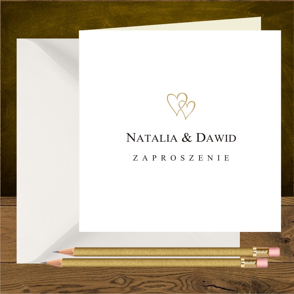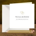 Zaproszenia ślubne minimalistyczne z dwoma złotymi serduszkami