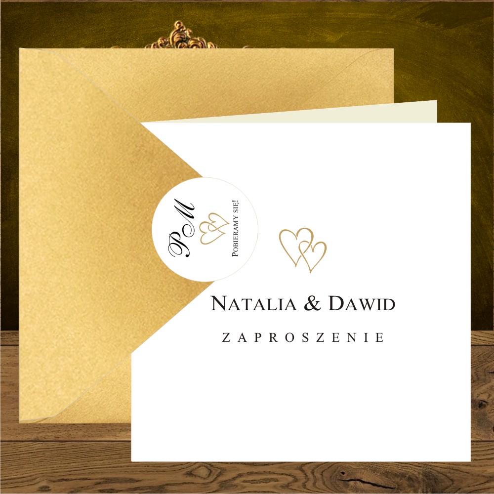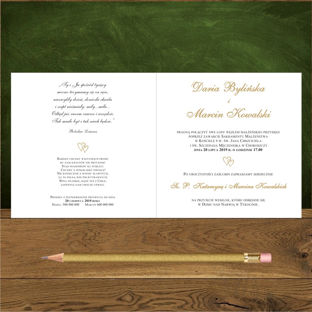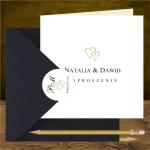 Zaproszenia na ślub z dwoma zlotymi serduszkami fantazyjne