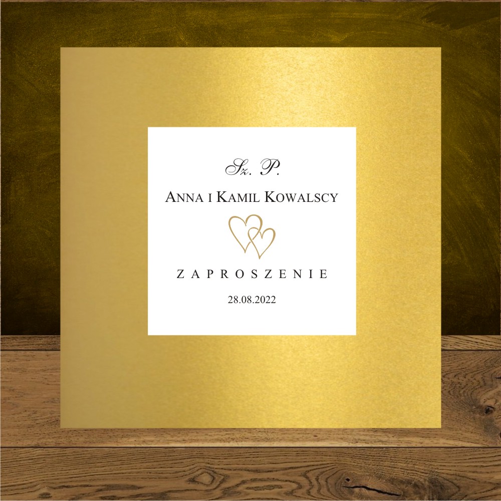Zaproszenia slubne jednostronne dwa serduszka złote minimalistyczne