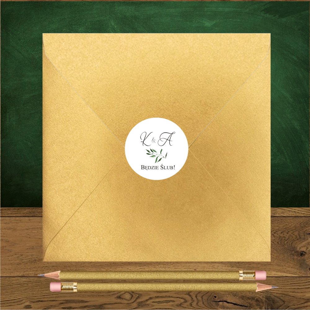 Naklejka na kopertę Druk na naklejce z papieru takiego jak zaproszenia. W przykładzie koperta zielona |