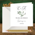 Zaproszenia weselne biało zielone idealnie skomponują sie z kopertą zieloną, eleganckie zaproszenie