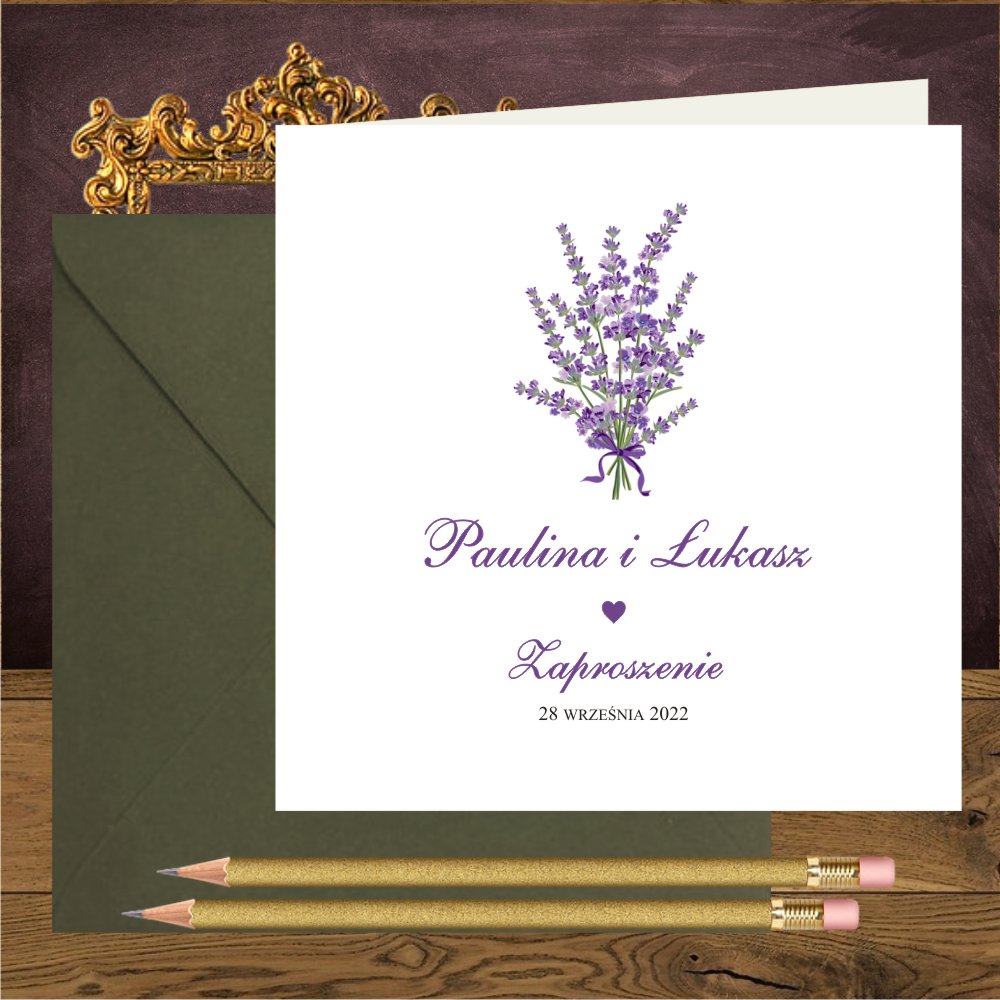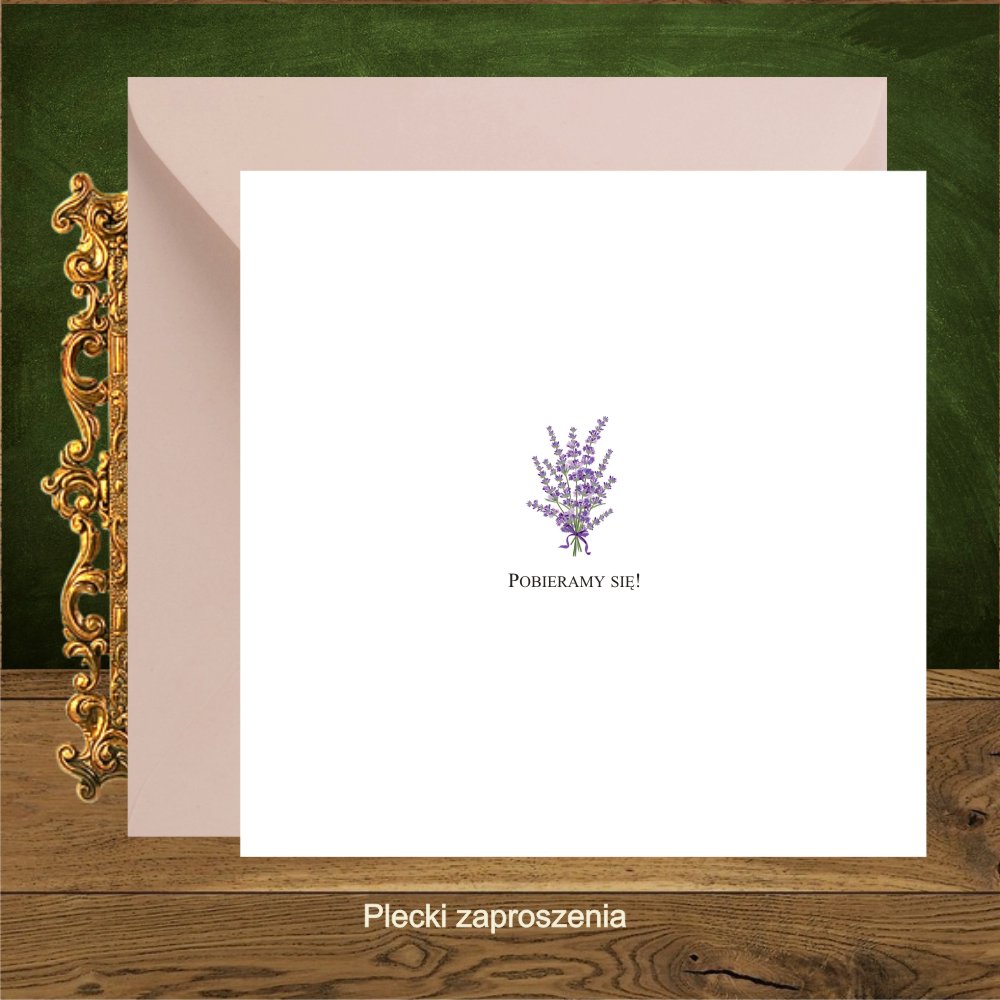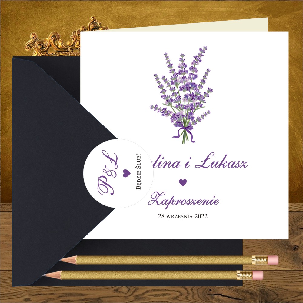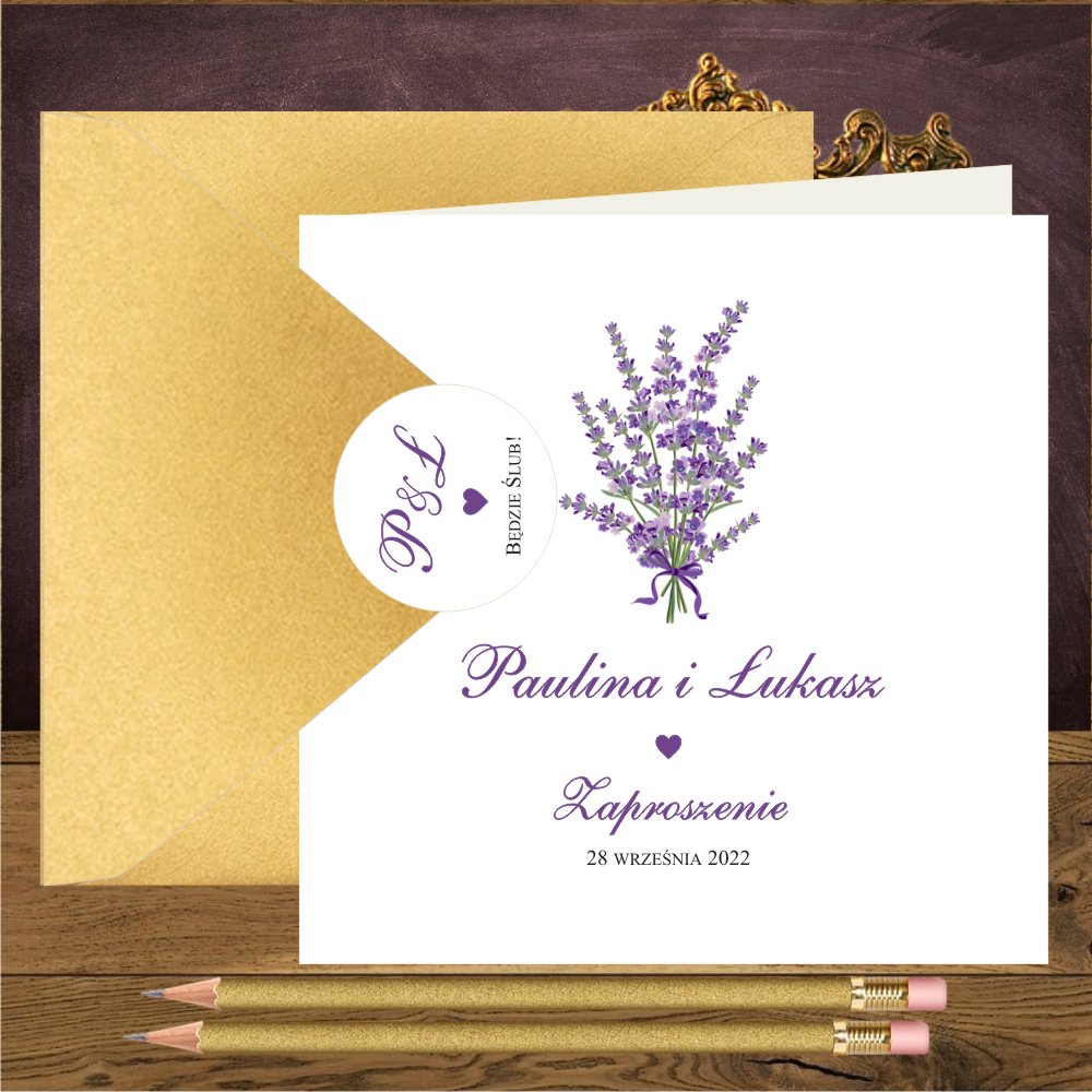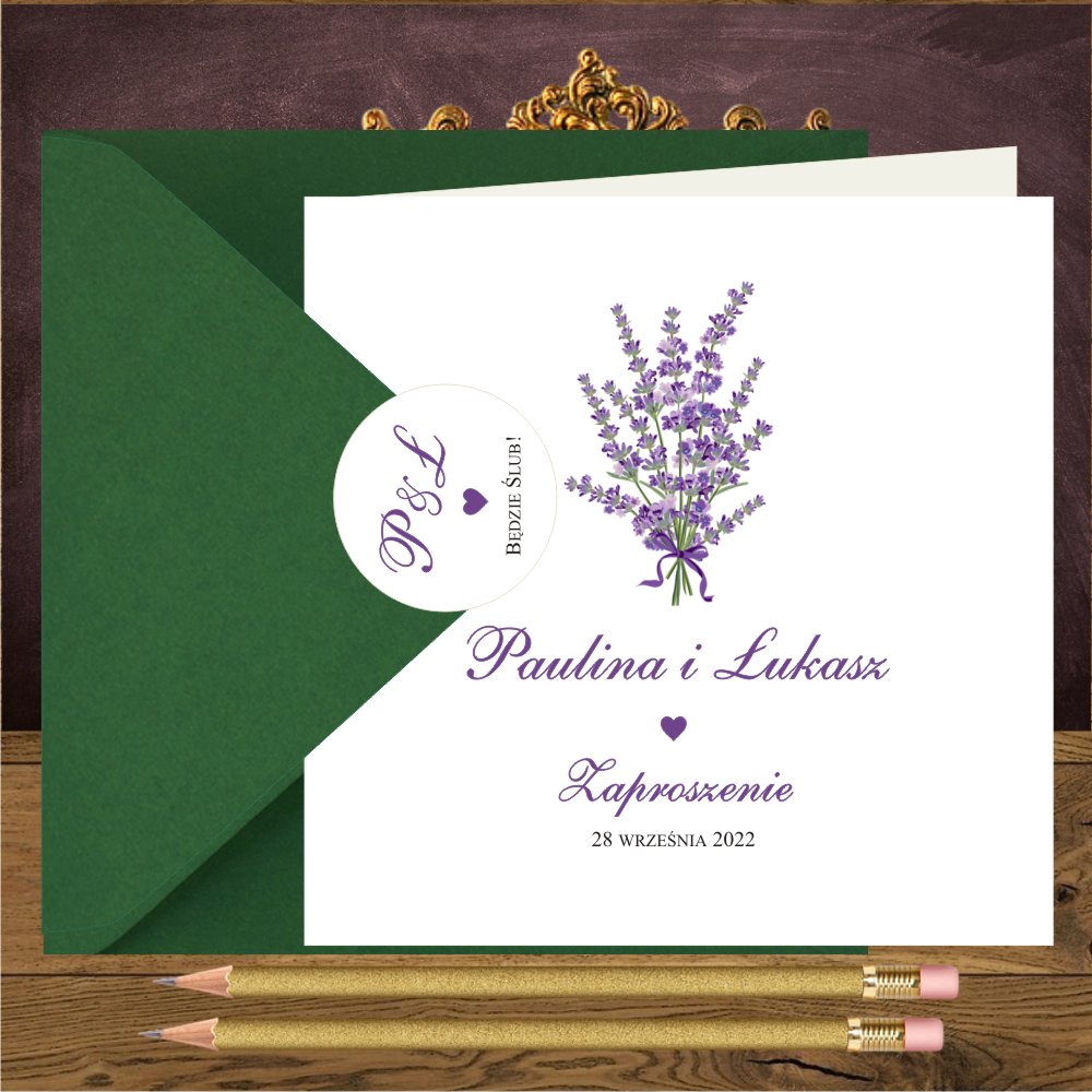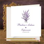 Zaproszenia na ślub z lawendą, koperta z wyklejeniem
