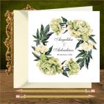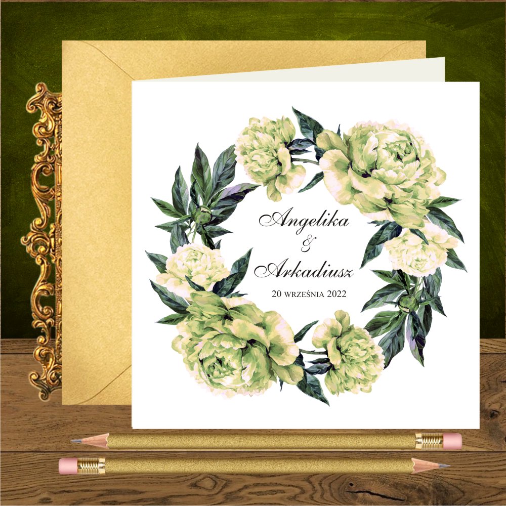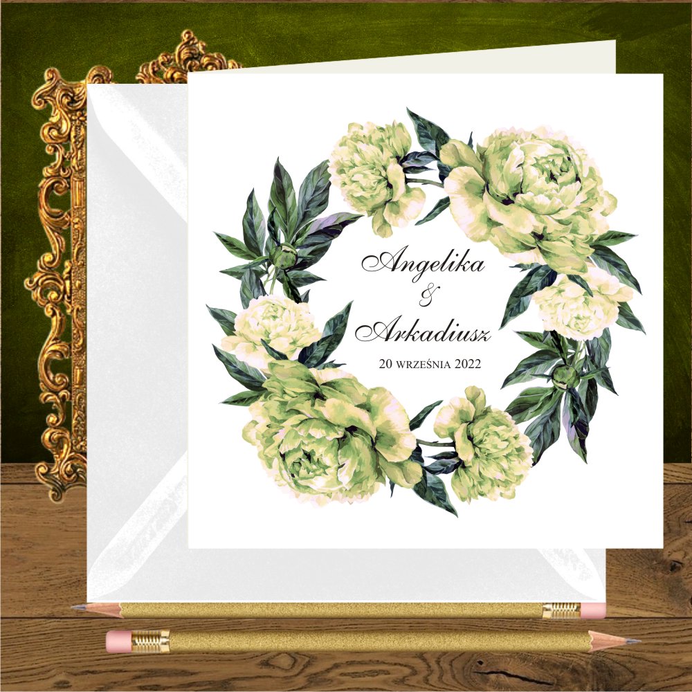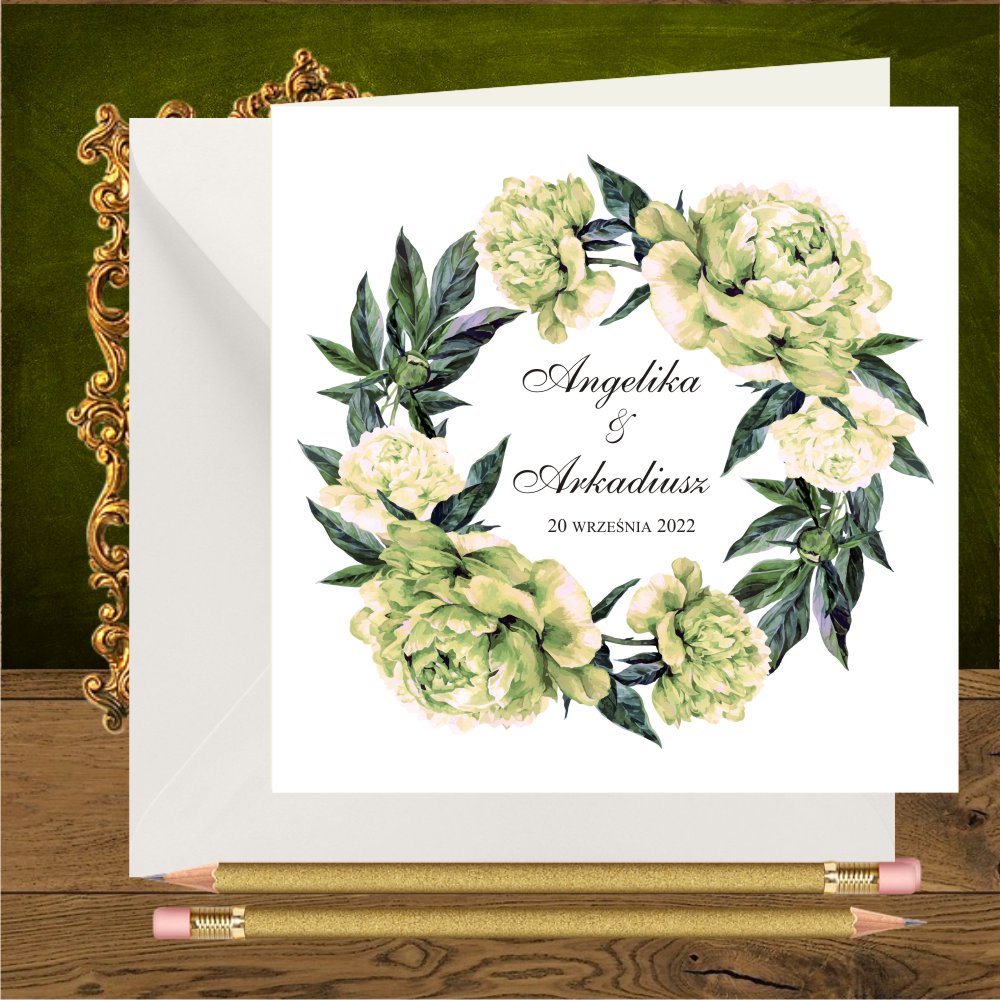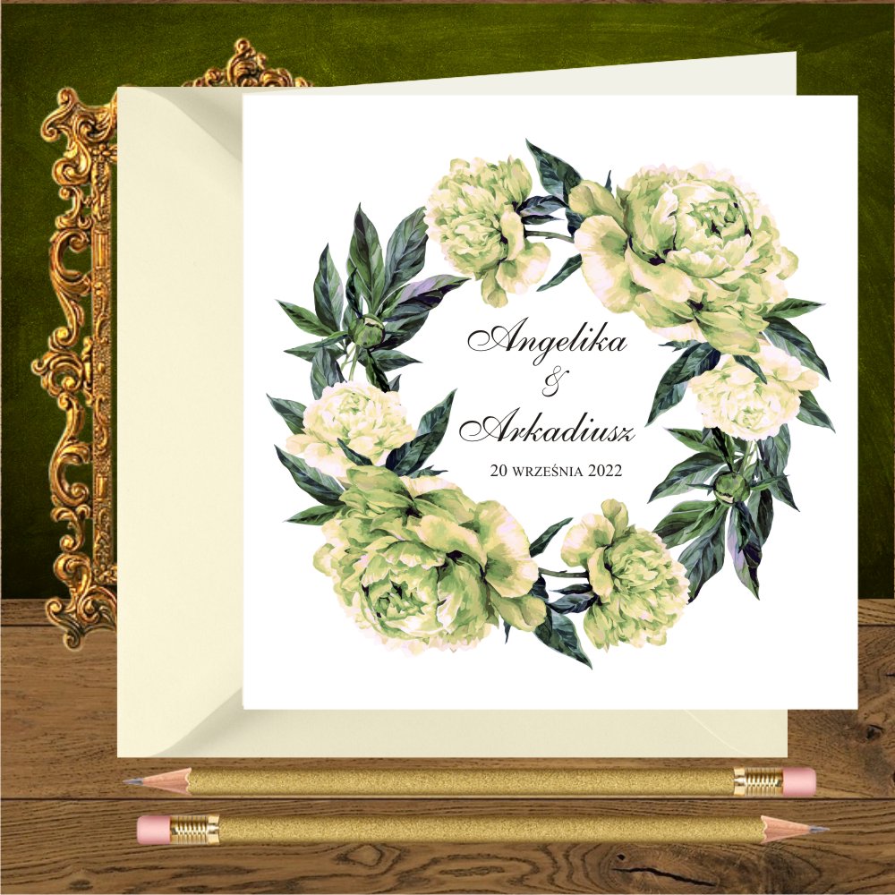 Zaproszenia ślubne z piwoniami, kwadratowe. Piwonie ecru