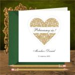 Zaproszenia ślubne glamour z sercem na złotym kartoniku. Serce złote