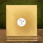| Naklejka na kopertę w kształcie kółeczka. Wykonana z papieru takiego jak użyty w zaproszeniach. |